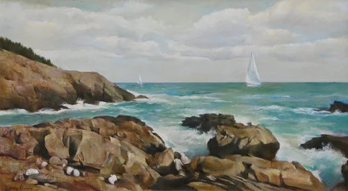 Water represents energy and life. I enjoy painting quiet waters at sunsets, calm and peaceful marinas at dusk, and waves dancing wildly as they crash into hard stones on the Maine shore. I find peace in observing the movement of water, which ebbs and flows regardless of our human intentions.